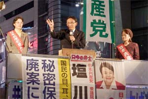 東京・池袋駅東口/秘密保護法案強行「採決」に抗議の宣伝
