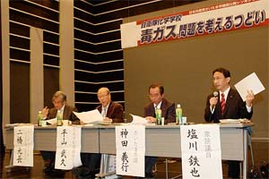 日本共産党さいたま市議団主催のシンポジウム「陸上自衛隊化学学校の毒ガス問題を考えるつどい」にシンポジストの一人として出席。会場いっぱいの200人の参加。