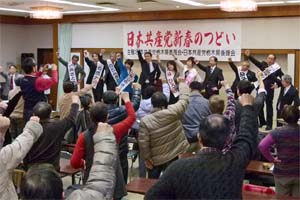 党栃木県委員会主催の「新春のつどい」に参加。国会での「自共対決」の状況を報告。「実力の上でも自共対決を」と訴えました。