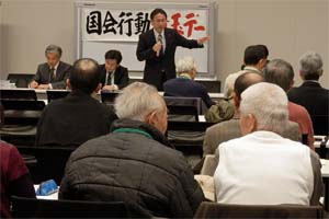 埼玉県民大運動実行委員会の国会行動集会であいさつ。