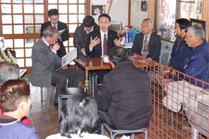 農業委員会会長やイチゴ組合の組合長、養豚、シイタケ、キュウリ農家とお会いして、いまの要望や意見を寄せてもらいました。「資材不足は深刻。鉄骨など『1年半待ってくれ』などと言われている。ぜひ支援期間は2~3年を視野にいれてほしい」「苗の確保も大変」「復旧への助成と言うが、雪に強いハウスに建て替えることができるのか」「ハウスを自力で撤去する場合も支援してほしい」「大雪被害は、小さな経済圏の秩父にとっては大打撃。イチゴ狩りがダメになって、観光業にも影響が出ている。旅館の予約キャンセルも1カ月以上だという」。