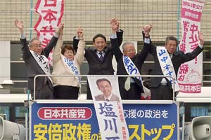 アラレがぱらつく花冷えの秩父です。4月13日告示、20日投票の秩父市議選。斉藤かつしげ、出浦あきえ、新井こういち、山中すすむの4人実現のため、応援に駆けつけました。