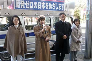 やぎした県議、城下・矢作・荒川市議と、ダイエー前で新年の訴え。民主党の自民党化、二大政党づくりの破たんがはっきりした。民自公による事実上のオール与党体制の下、消費税増税やTPP推進、米軍基地押し付けなど、米国と大企業優先の政治による矛盾は、いっそう拡大する。国民と力を合わせて、ゆきづまりを打開する政治の実現に全力を挙げたい。