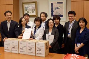 自治労連の代表の皆さんからずっしりとした署名用紙を受け取りました。「自治体非正規雇用・公務公共関係労働者の雇用・待遇の抜本改善を求める国会請願署名」です。