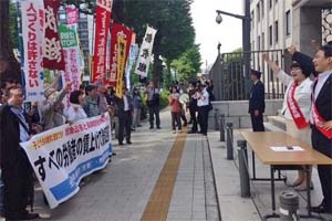 全労連などが主催する「労働者派遣法改悪反対、公務員総人件費削減反対、公務・公共サービス拡充」を求めるデモの参加者を激励しました。