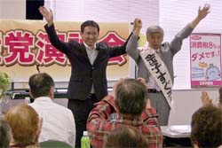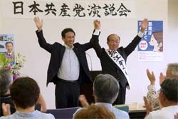 茨城県常陸大宮市の日本共産党演説会。7月20日告示、27日投票で市議選が行われます。堀江かくじ議員と金子すぐる議員の応援に駆けつけました。