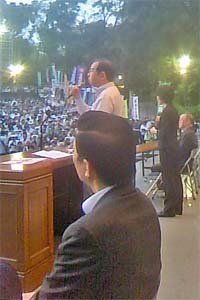 日比谷野外音楽堂は駆けつけた参加者でいっぱいです!志位委員長は「憲法破壊の暴挙を許すな!」と熱い訴え!
