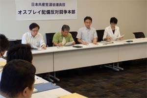 日本共産党国会議員団オスプレイ配備反対闘争本部の対策会議が開かれ、米垂直離着陸機MV22オスプレイの東日本地域への飛来計画について防衛省から説明を受けた。