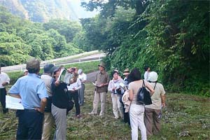 長野原周辺は、浅間山の噴出物が堆積した地滑り地形となっており、国交省の造成地調査では、盛土部分の地滑り調査はしても、基盤部分の調査はしていない可能性があります。三つ目の写真は地滑り地形の場所。四つ目の写真は、天明の浅間山噴火の噴出物が流れ込んだ跡のある発掘調査場所です。