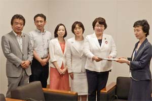 党国会議員団男女平等推進委員会が、党女性委員会と連名で、内閣府に対し、7月末が期限の国連女性差別撤廃委員会への政府報告にあたって、女性差別撤廃条約の批准国としての責任を果たし、条約を全面実施するよう申し入れた。