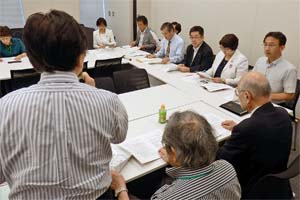 日本原水爆被害者団体協議会(日本被団協)と党国会議員団は、被爆者切り捨ての原爆症認定制度を抜本的に改定する問題で懇談。