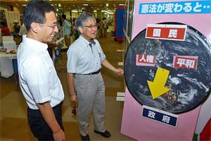 高校生など若者も多数参加、熱心に展示物の説明を聞いていました。安倍内閣の「戦争する国」づくりの動きに多くの人が危機感を共有し、行動に立ち上がっています。