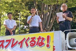 神奈川県大和市内で行われた「オスプレイ来るな!緊急抗議集会」に参加、あいさつしました。