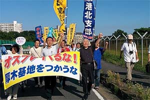 2)沖縄をはじめとして全国の米軍基地被害をなくす運動と連帯するたたかいです。厚木へのオスプレイ飛来は沖縄県知事選を前にした「沖縄の負担軽減」というパフォーマンスであり、訓練の本土移転を理由に日本側に経費負担させることを目論むものです。嘉手納基地のF16訓練移転といいながら、実際には外来機が増えて嘉手納基地の爆音被害は拡大しました。沖縄県知事選勝利で、オスプレイは沖縄にも本土にもいらない、という審判を下しましょう!