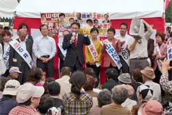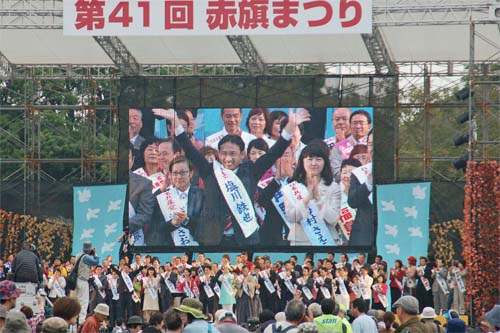 中央ステージで、衆院比例代表候補19名が紹介されました。北関東は、塩川鉄也と梅村さえ子さん。「いい塩梅コンビ」で必ず2議席実現を!頑張ります!