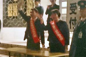 「川内原発再稼働を許すな!11・7緊急国会請願行動」のデモの皆さんを激励。高橋千鶴子議員と一緒です。