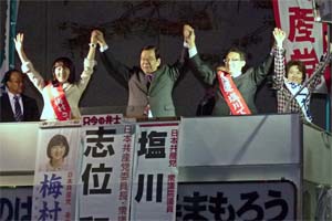 大きなうねりのような声援に、心も体も震えるようです。志位さんは「塩川さんと梅村さんの2議席で、いい塩梅コンビを」。公認コンビです。