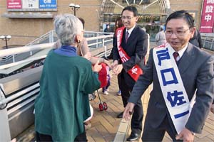この後は、宣伝カーに同乗して、熊谷駅に向かっています。車の中からの手を振っての応援は嬉しい限り!
