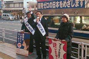 今日は所沢市内で街頭宣伝。辻もとみ埼玉8区予定候補、柳下れい子県議と一緒です。