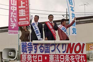 つくば市内で、山中たい子県議予定候補、井上圭一衆院茨城6区予定候補と街頭演説。