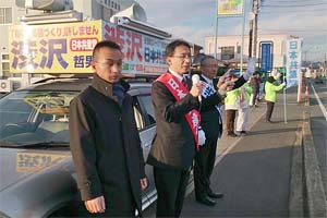 太田市内で街頭宣伝。渋沢哲男群馬3区候補と訴えました。