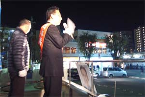 夕方の若葉駅で街頭演説。伊藤岳さんと一緒です。