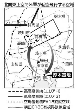 【塩川】おっしゃるように群馬県は爆音被害が突出しています。なぜそうなるのか。群馬県には3種類の米軍低空飛行訓練エリアがあるのです。