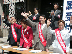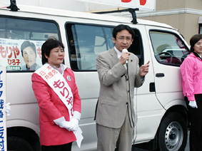 後半戦(町村議選)では、20日所沢市、21日水海道市・下館市、22日三芳町、23日大井町・所沢市、24日所沢市、25日桐生市、26日所沢市で各市町選候補の応援演説をおこないました。 |