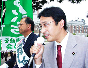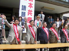 19日、群馬県知事選が告示され、新人の吉村しゅんいち候補(日本共産党推薦)は県庁前で約250人を前に第一声をあげました。応援にかけつけた塩川てつや衆院議員は、相次ぐ倒産や失業の増大など県民が苦しんでいるとき、むだな大型公共事業に湯水のようにお金を使っている国言いなりの県政転換を訴えました。国に、はっきりモノを言い、県民とともに考え行動する知事が必要であり、県民が主人公の群馬県政をめざす吉村候補への支持を訴えました。