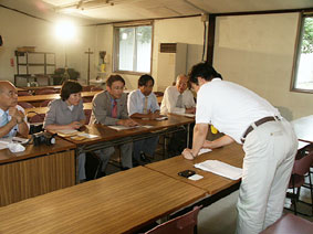 | ■水戸メガモール視察・懇談 (9月24日) 日商岩井が水戸市に巨大商業施設「水戸メガモール」(仮称)を計画している問題で、日本共産党の塩川衆院議員は24日、おじま衆院1区候補、大内県議、4人の水戸市議と水戸商工会議所役員と懇談。また、茨城県・水戸市の担当者から詳しい話を聞くとともに、建設予定地を視察しました。「メガモール」は約31fで、既存の水戸市中心商店街の面積に相当。売り場面積は7万4千平方bと国内最大級です。 商工会議所の説明のなかで、「環境、排水や交通安全に不安」「一企業のためにインフラ整備などで税金が使われるのは、いかがなものか」「規模を縮小すべきだ」などの意見が会員から出されていると紹介し、「意見の8〜9割は反対している」と強調しました。 塩川衆院議員らは、水戸市内の商店街も訪問して話をききましたが、「莫大な税金を使うなら、私たち商店街の活性化のために使うべきだ」などの意見が出されました。