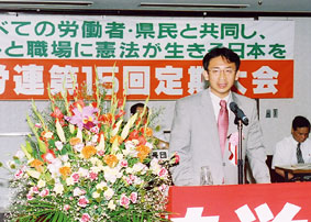 | ■埼玉県労働組合連合会(埼労連)定期大会、全国税労組関信地大会であいさつ(9月13日) 埼玉県労働組合連合会の定期大会が13,14の両日開かれ13日、塩川議員が来賓として連帯と激励のあいさつをおこないました。また、同日午後、全国税労組関信地連であいさつをしました。