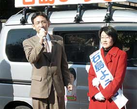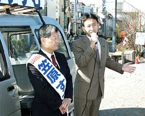 | ■埼玉・新座市議選の告示で応援に (2月8日) 笠原・石島両候補の応援に行きました