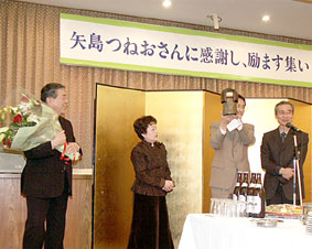 | ■矢島前衆院議員の労をねぎらう「集い」に参加 (2月14日) 日本共産党の国会議員を4期14年つとめた矢島つねお前衆院議員の労をねぎらう「集い」で司会者の役をおおせつかりました。