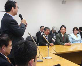参院否決の意思そして民意を無視した暴挙だ。戦争でテロはなくせない。米軍の戦争支援の自衛隊海外派兵法は、テロ根絶に逆行し憲法違反。日米軍事利権の徹底解明こそ国民は求めている。 数の横暴は必ず国民の審判を受けるだろう。 民主党の小沢代表は、本会議を途中退席し、法案の賛否について棄権した。自民党席から“本音は賛成なんじゃないか”という野次が飛んでいた。私が「大連立の布石じゃないか」と野次ると、公明党議員が神妙な顔で聞いていた。 民主党対案を与党が継続審議(次期国会に法案を持ち越すための手続きのこと)にするという。通常、政府案の対案は、政府案成立とともに廃案となるが、わざわざ「継続」扱いにするのは、今後の自衛隊海外派兵恒久法づくりの足場にしようとの思惑を感じる。政策上は、大連立がすすむことになる。国民世論と力を合わせて、はね返していきたい。 |