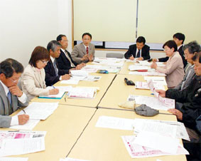 視察先の「中央第三者委員会」は、社会保険庁から引き継いだ案件と地方第三者委員会から“先例を作る”ために移管された案件を扱っている。 6つの部会の1つである「厚生年金第一部会」(メンバー6名)は、事務局からの報告を踏まえ個別事案の審査を行っていた。 年金記録の確認を求める申請者の半生を追体験するような作業だ。記録がない中で、本人や知人の記憶などをきっかけに事実の掘り起こしをする。委員から事務局に対して「慰安旅行など、職場の同僚が思い出せる記憶をたどれるよう本人に聞いてもらいたい」「(勤務記録のない職場の掘り起こしのために)その後の就職先での履歴書が参考にならないか」など、具体的な指摘が行われていた。 視察後の懇談の場で、私は「中央第三者委員会として、地方ごとの審査内容のアンバランスの標準化をはかる作業を行ってほしい」と提案。梶谷氏(中央第三者委員会委員長)は「中央と地方は上下関係ではないが、判断で違うところがあれば、どこが問題か協議していかなければいけない。目配せしていきたい」と述べた。 |