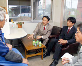 関係漁協の主張は当然の要求だ。その要求を国が受け入れるよう、流域住民・自治体や釣愛好家にも働きかけていきたい。もちろんわが党として、むだづかいで環境破壊の導水事業計画「破綻」の実情を大いに訴えていきたい。 アユ加工業者と懇談(那珂川町) 那珂川流域でアユ加工業に取り組んできた方からお話を伺った。全国一のアユ漁獲高の那珂川。導水事業による取水口建設が、アユの仔魚に影響が出ないか懸念の声が寄せられた。那珂川町では、栃木県による産廃の最終処分場建設も計画されている。処分場の排水は那珂川に流れ込むことになる。下流からも上流からも那珂川の清流を守れという声を上げていくときだと痛感した。 |