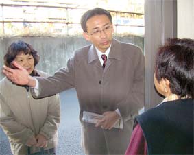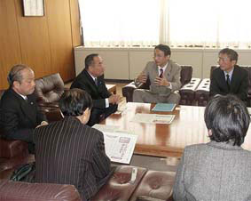 | ■いすゞ自動車の違法解雇問題で町長、商工会と懇談/栃木・大平町(12月3日) いすゞ自動車の違法解雇問題で、小池一徳衆院北関東比例予定候補らといともに、栃木工場がある大平町の鈴木俊美町長と懇談し、非正規労働者の救済を求めた。山崎寿彦南部地区委員長、大森博視町議らが同席。 鈴木町長は、金融危機後のいすゞ対応について「町の財政にとって大きな問題だ。いすゞは町のPRに役立つ存在だけにショックだ」と企業収益の減少に懸念を表明。町内に住む28人の期間社員について「来年1月10日までに退去するよう言われているようだ」とのべた。 いすゞは600億円もの利益を上げ、企業体力もある。雇用を守る義務があり、解雇予告通告は労働契約法に違反するもの。行政の対応をお願いした。 鈴木町長は「(非正規社員の)雇用の相談に乗り、ハローワークにつなげたい。居住については工場に申し入れ、町として相談を受け付ける」と話した。
