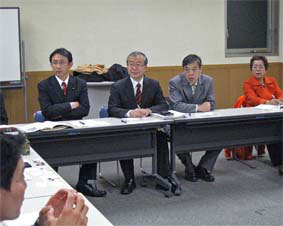 | ■浜松で外国人派遣切りの調査/静岡(2月2日) 外国人労働者の派遣切り等の実態をつかもうと党国会調査団として、外国人労働者数が全国3番目に多い静岡県に入った。 佐々木、こくたの各衆院議員と、瀬古、平賀東海比例予定候補らも参加。 県内で外国人労働者(31,453人)がもっとも多く、自動車などの製造業が集中する浜松市で、実情を聞いた。市からは、清田浩史企画部長、古橋利広学校教育部長らが応対。 外国人労働者が真っ先に犠牲になるなど、差別的な扱いを受けている場合が多いと聞く。同市でつかんでいる実態などを聞き取り。 市側は、外国人労働者の6割が派遣や請負で、全国平均(約3割)より高いことや市の緊急経済対策を紹介。離職者用に提供した市営住宅50戸はすぐ満杯になり、50人の臨時職員募集枠に224人からの応募があり、その9割を外国人が占めたことや、この2カ月で職業・生活相談が1,054件寄せられたことを話した。 また、親の失職によって市内の外国人学校の生徒が急減し、給食費などの未納も増えている状況を示した。外国人労働者の社会保険加入が1割と低い問題なども出た。 国にたいしては、市が単独で行っている、外国人子ども教育支援推進事業(今年度1億円)への支援を要望した。
