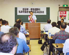 ■関東私鉄労働者後援会総決起集会に参加、あいさつ(6月17日)