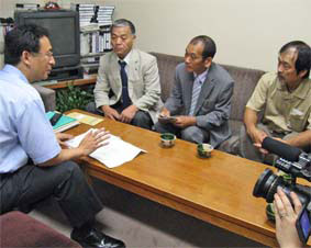 | ■埼玉/秩父で各界と懇談――地デジ・農林業・医療(7月24日) 地デジ問題で懇談 最初は秩父市役所内で、2年後に迫ったテレビ放送の地上デジタル化の影響調査。送電線による受信障害のため、東京電力から共聴施設の提供を受けていた小鹿野町の住民は、当初デジタル化にともない共聴施設提供を打ち切るとしていた東京電力と話し合いを重ね、東京電力側の負担で改修などを実施し、地域住民でつくる組合が共聴施設を引き継ぐことになったと説明。 同じように送電線による受信障害で東京電力が共聴施設を提供していた所でも、平野部では共聴施設提供を打ち切るとしている。今後の運動の参考になった。 農林業/人材育成を強調