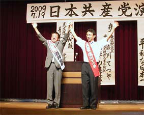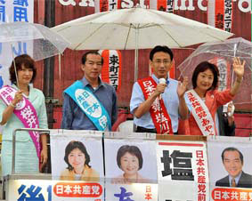 都議選の結果は、自公政権が終焉を迎えつつあることを意味している。待ち望んだ解散総選挙で、ゆきづまった自公政治を終わらせよう。21世紀を見通す「改革ビジョン」を示し、消費税増税・九条改悪にストップをかける確かな力として日本共産党を伸ばしてほしい。 |