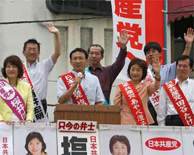 自公政治に厳しい審判をくだそう。比例代表定数80の削減などを主張する民主党の危険性もある。いいものはいい、悪いものは悪いという建設的な野党・日本共産党が前進することが重要だ。 |