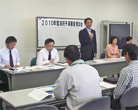 国交省には八ツ場ダム建設中止方針について「地元住民は下流都県住民のためにと心ならずもダム建設を受け入れてきた。マニフェストに書いてあるから中止というだけでは反発されるのは当然。徹底した情報公開など地元の合意が得られるよう説明責任がある」とのべ、国がしんしに謝罪し、徹底した情報公開で水没地区住民や関係都県住民に対して説明責任を果たすことや、地元の要望をふまえ現状に即した補償措置と生活再建、地域振興に万全を期すよう要望。 国交省担当者は「地元住民や関係自治体にはしかるべき時期に説明を行い、誠意を尽くし粘り強く話し合いたい」と答えた。 厚労省には、生活保護の決定や保護費支給まで相当の日数を要す事例が多いことや、ハローワークで生活費の貸付制度などを相談すると「他法優先」として市役所や社会福祉協議会に行くようたらい回しにされている実態をあげて指導、改善を求めた。担当者は「他法優先をもって他の機関に行くよう指導することには疑義がある」とのべた。 文科省に高校・大学の学費軽減策などを求めると、担当者は高校授業料について概算要求で公立年12万円、私立24万円を上限に各校に補助し無償化を図る方針を明らかにし「確実な実施に向け取り組む」と説明した。 |