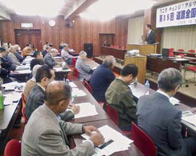 公共事業着工前に埋め立て(道路橋)差し止めをかちとった「鞆の浦世界遺産訴訟」について、同訴訟弁護団事務局長の日置雅晴早稲田大学大学院教授・弁護士が報告し、法政大学教授の五十嵐敬喜弁護士が講演。橋本良仁道路全国連事務局長、全国公害弁連の西村隆雄弁護士らが訴えた。 大型道路建設の無駄遣いを告発し、道路公害問題にとりくんできた各地の住民団体のメンバーらが参加し、運動を交流した。 |