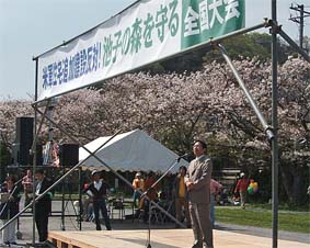 国が追加建設の容認を条件に、逗子市域の基地一部返還案を市に提示していることに対し、追加建設はないとした「三者合意」違反であるとのアピールを採択。 元逗子市長の澤光代氏、中央大学名誉教授の長谷川幸生氏、沖縄県から駆けつけた「ヘリ基地反対協」代表委員の安次富浩氏、平和フォーラム・平和・人権・環境、安保破棄中央実行委員会の代表、民主党、社民党の国会議員らが発言した。 緑を破壊する追加建設は許せない。「三者合意」をほごにする鳩山内閣を変えていこう。 | ||