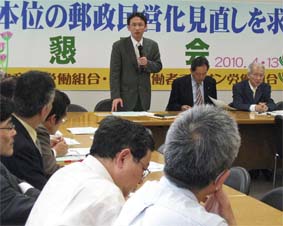 ■郵政民営化問題/公共に寄与する事業体に/郵産労などと懇談(4月13日)