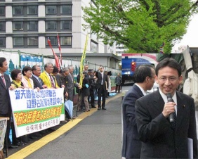 ■米軍普天間基地撤去と移設に反対して座り込む沖縄の要請団を激励(4月27日)