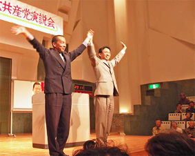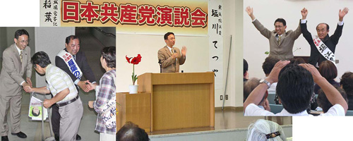 茨城県の常陸大宮、常陸太田両市で開かれた演説会で、参院選挙区の稲葉のぶとし、常陸大宮市の金子すぐる、堀江かくじ、常陸太田市の宇野たか子の各市議とともに訴えた。 普天間基地、くらし・雇用、「政治とカネ」などの問題で、アメリカと大企業いいなりの鳩山政権。参院選、市議選で「国民が主人公」の政治をめざす日本共産党の勝利を。 |