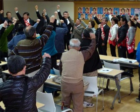 戸田市では、民商をはじめとした中小業者の運動と党市議団の奮闘で、中小企業振興条例が制定された。画期的だ。中小企業団体も参画した「振興会議」で計画を具体化していくことになる。「形」だけに終わらせず、「魂」を入れる取り組みにしていこう。 ぜひ住宅リフォーム助成制度の創設を県政、市政で実現していこう。 4月の埼玉県議選、6月の蕨市長選挙(現職:頼高市長)・同市議選挙(党4議席)への支援をお願いした。 |