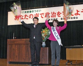 民主党の「自民党化」が進むなか、展望を示せるのは日本共産党だけ。もりやひろ子さんの県議会での追及で、国保証の取り上げ数が減った。 もりやさんを県政に、本山・川口・かきた・こんの4氏を市政に。全員勝利を。 | ||||